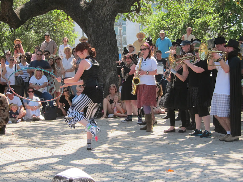 Last weekend sixteen street bands from all over the US converged on Austin for the second annual HONK!TX festival. Wikipedia describes street bands as “ambulatory, acoustic bands playing music in public spaces.” I would also add “…dressed in outlandish costumes and doing things with hula hoops.”